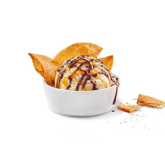Vanilla ice cream, chocolate, caramel, cinnamon-sugar, tortilla strips