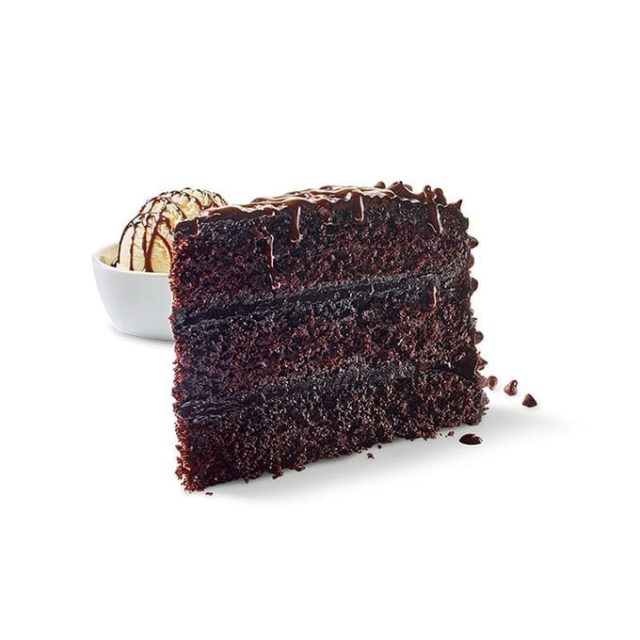 Chocolate fudge cake, chocolate sauce, vanilla ice cream