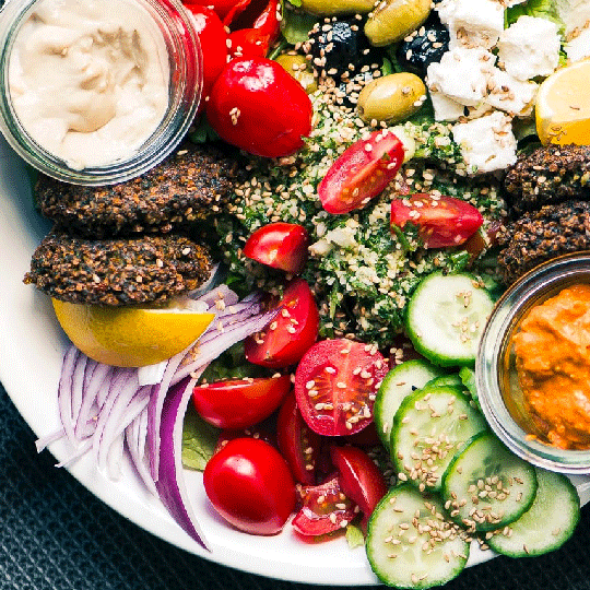 Falafel, Isbergssallad, Tomater (Färska), Rödlök, Feferoni, Kebabsås Mild (I Burk)